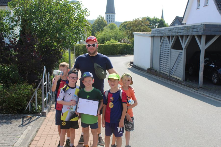 Bei dem super leckeren Frühstück haben sich alle gestärkt, um dann im Anschluss mit der Dorfrallye zu starten. Die Versorgung hat 34 spannende Fragen über Belecke zusammengestellt. Zur Beantwortung der Fragen sind die Gruppen durch den Ort spaziert und haben so die Umgebung besser kennengelernt. Wir wollten zum Beispiel wissen wie hoch der Kirchturm ist, wie viele große Steine am Bolzplatz liegen oder welcher Fluss durch Belecke fließt.