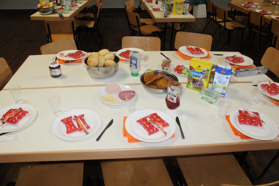 Heute Morgen wurden die Kinder mit Musik begrüßt. Erst wurde gefrühstückt und danach das Schnitzelbrötchen eingepackt.