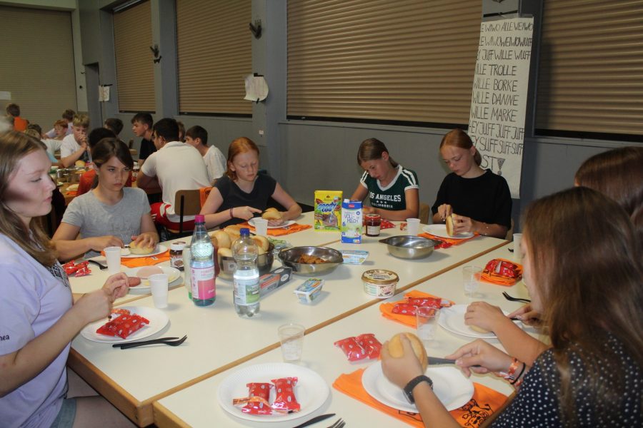 Unser Tag startete entspannt mit dem Gammelmorgen. Alle durften bis 9 Uhr ausschlafen und konnten dann zum Frühstücksbuffet gehen und nach Belieben schlemmen. Danach konnten die Gruppen beim Gruppen-Intern den Morgen nach Belieben gestalten. Einige Gruppen sind Eis essen gegangen, es wurden Armbänder und Schlüsselanhänger geknüpft oder ein Ausflug ins Dorf gemacht.