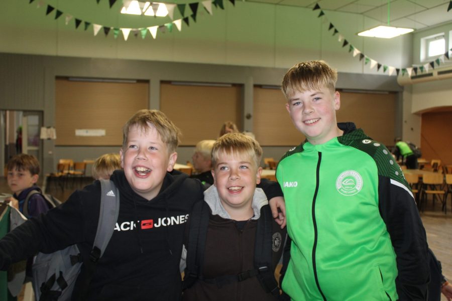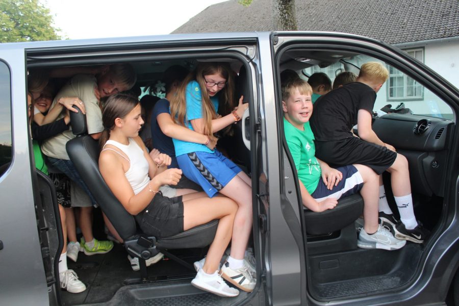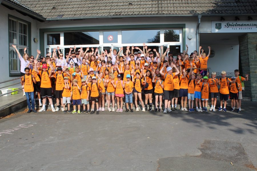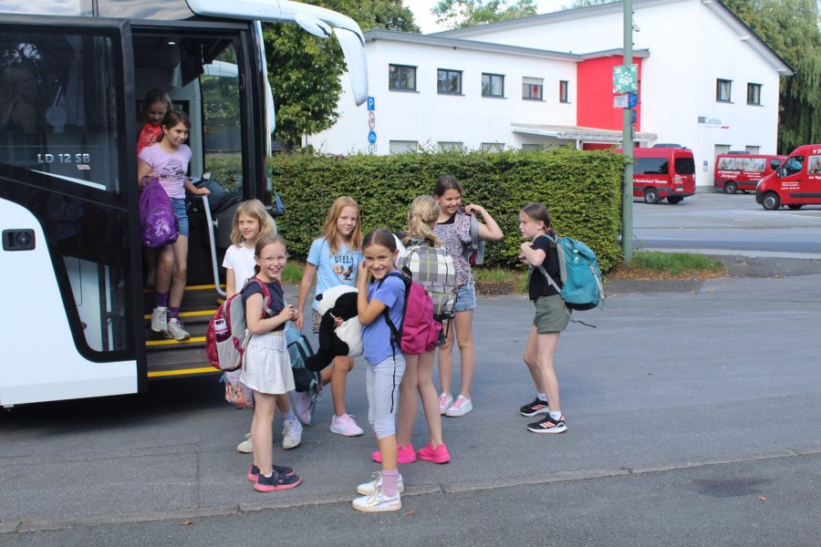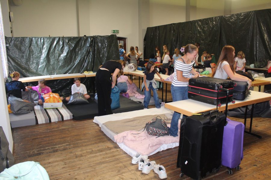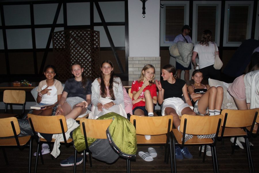 Mit einem Empfangskomitee, bestehend aus dem gesamten Team, wurden die Kinder vor der Halle in Empfang genommen. Nachdem alle ihre Koffer gefunden hatten, wurde zusammen mit den Gruppenleitern der Schlafraum eingerichtet. Im Anschluss gab es einen Rundgang durch die Halle und die Außenanlagen. Es wurde noch ein bisschen Organisations-Kram erledigt und dann konnten alle erstmal in Ruhe ankommen. Einige haben die überschüssige Energie beim Fußballspielen auf dem Hof rausgelassen und andere haben sich erstmal in den Schlafraum zurückgezogen oder Spiele gespielt.