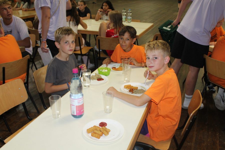 Wer auf dem Feld alles gibt, hat mittags natürlich wieder großen Hunger und heute hat uns die Küche wieder ein Festmahl bereitet. Es gab Kartoffelpüree, Brokkoli und Schnitzel. Und wer dachte, dass Kinder nicht gerne Brokkoli essen, der wurde eines Besseren belehrt. Alle Schüsseln wurden restlos geleert!