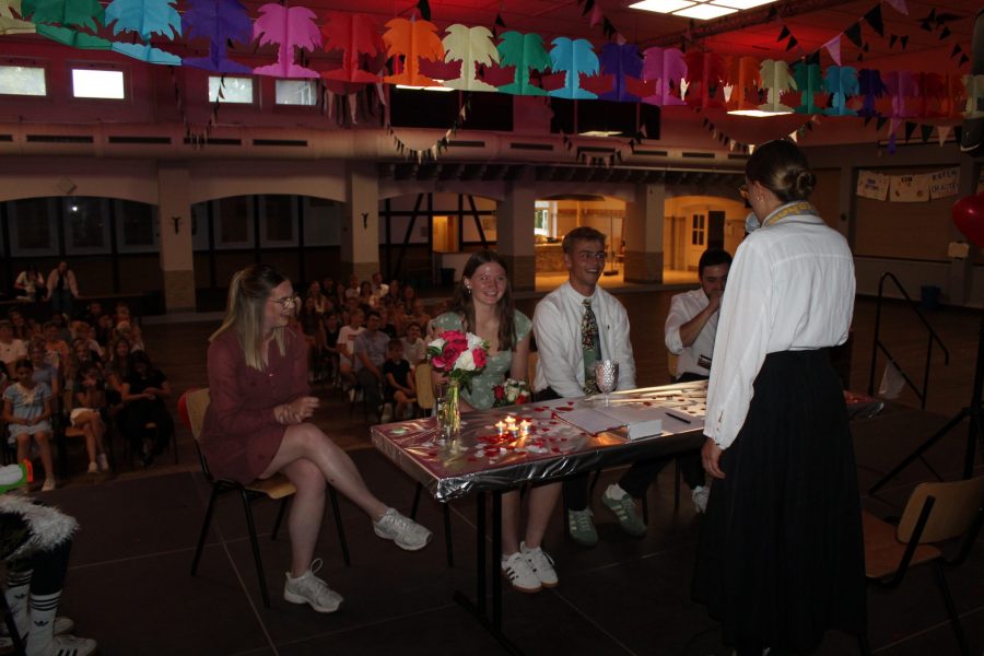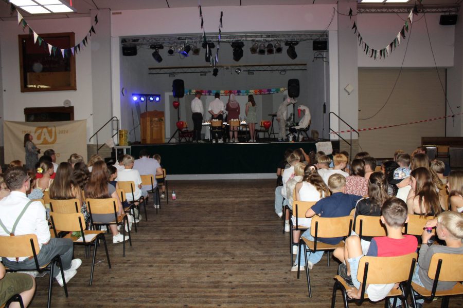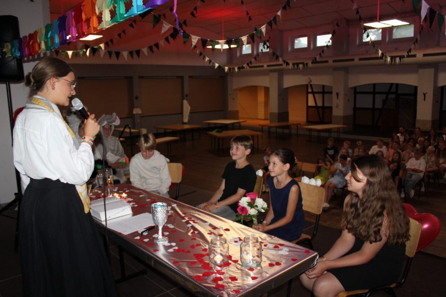 Ein absolutes Muss in jedem CAJ-Ferienlager ist die Lagerhochzeit. Und auch in diesem Jahr durfte diese natürlich nicht fehlen. Heute Abend war es dann endlich so weit. Die Vorbereitungen liefen schon seit Tagen. Es wurden Heiratsanträge geplant und durchgeführt, Ringe gebastelt und die Outfitfrage geklärt. So verwandelte sich die Schützenhalle heute Abend in einen romantischen Festsaal und die Pastorin aus Chicago kam extra für unsere Hochzeitspaare zu Besuch. 10 Brautpaare haben sich getraut und den Bund fürs Lagerleben geschlossen – wie heißt es so schön ,,bis, dass der Bus euch scheidet‘‘. Wir alle durften Gäste einer wirklich rührenden Zeremonie sein und feiern nun unsere Brautpaare gebührend.