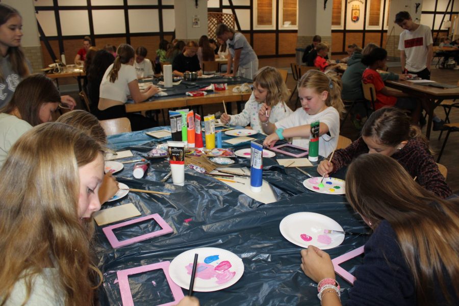 Heute Vormittag wurden bei den Bastel-AGs kreative Kunstwerke erschaffen. Jeder Gruppenleiter hatte eine Bastel-AG vorbereitet und die Kinder konnten sich aussuchen bei welcher AG sie mitmachen möchten. Es wurden unter anderem Stoffbeutel bemalt, Bilderrahmen und Schlüsselanhänger gestaltet oder aus Ton Schalen geformt.